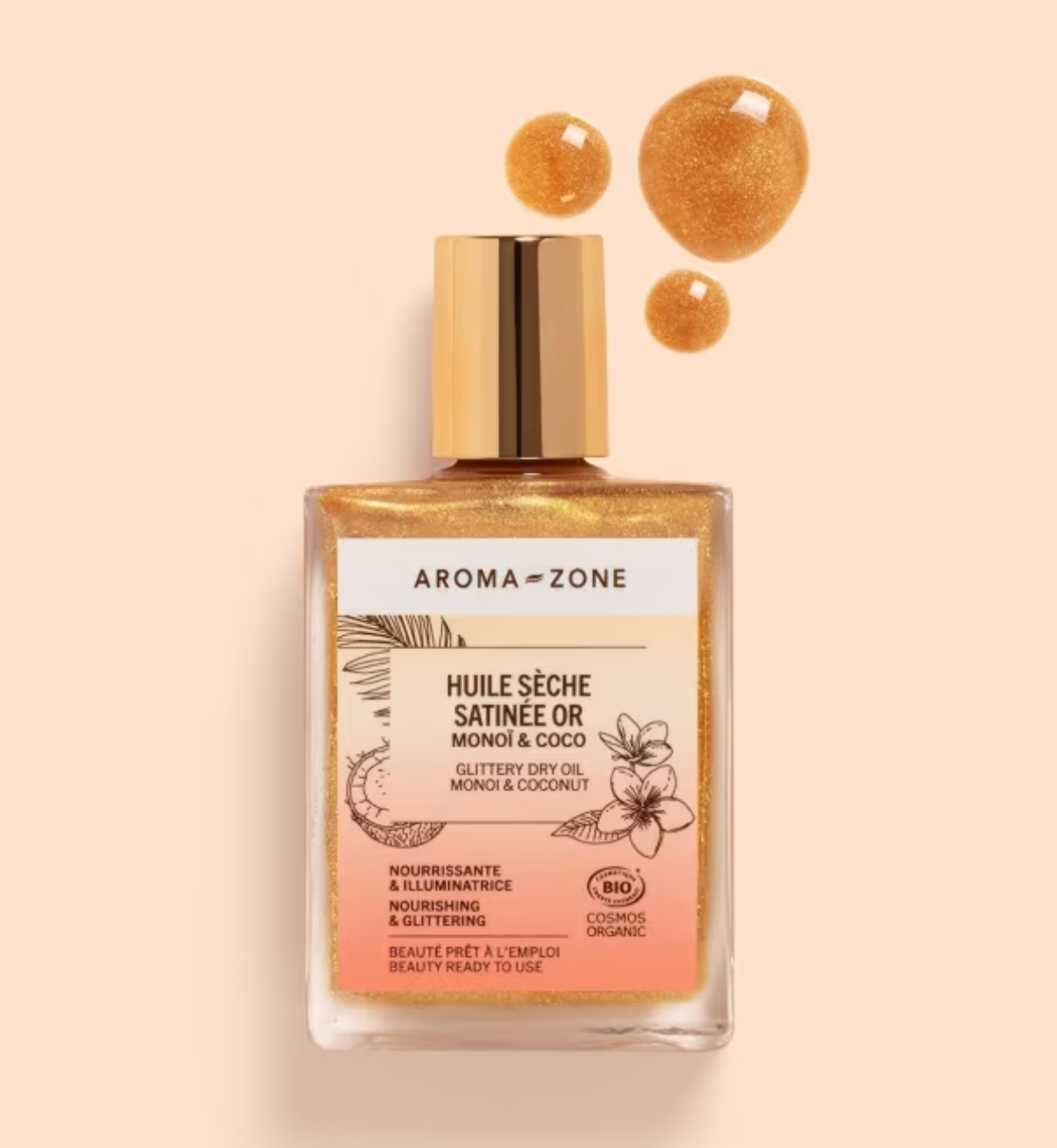 Aux huiles BIO de Monoï et Coco, cette huile sèche 100% d'origine naturelle et certifiée BIO sublime la peau et les cheveux d'un voile doré satiné et scintillant naturel. Sa texture légère et pénétrante nourrit et adoucit le corps, le visage et les cheveux sans laisser de film gras, ni collant. Cette huile pailletée à l'effet illuminateur express enveloppe la peau et les cheveux d'un parfum envoûtant et addictif de fleurs des îles et de sable chaud. Un soin indispensable pour sublimer son bronzage en été et mettre en lumière sa peau en hiver. Le compte-goutte présent sur cette huile permet un écoulement contrôlé de l'huile, pour un écoulement plus important retirer facilement le compte-goutte.